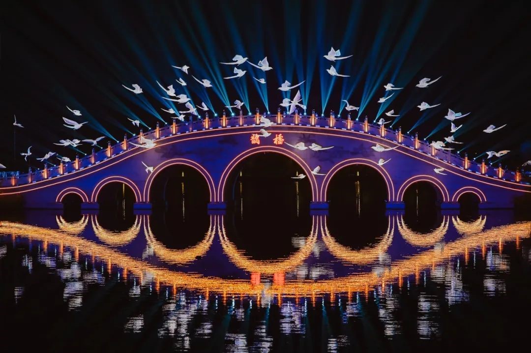 ? ? ? ? 作為七夕文化的重要起源地,昆明池和仙女湖多次獲得央視&紅豆七夕特別節(jié)目的垂青?!耙黄ッ鞒兀锟椗?,漢武帝在昆明池兩岸豎起的織女石像和牛郎石像,令昆明池以“人間天河”聞名于世。而一段美麗浪漫的仙俗奇緣傳說則令仙女湖的“仙”文化深入人心。不僅如此,兩地受到良好保護的生態(tài)環(huán)境,秀美的綠水青山,優(yōu)越的自然風光,也為七夕晚會的舉辦提供了得天得厚的條件。
